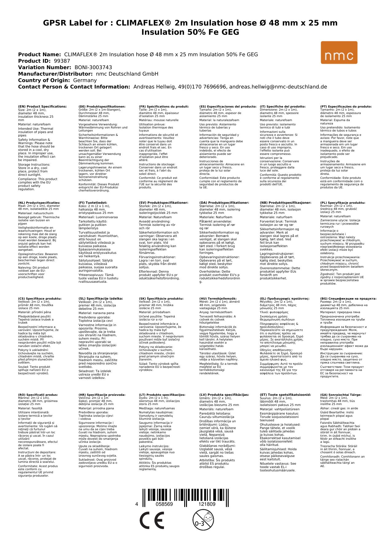 CLIMAFLEX® naturefoam 2m Isolierschlauch Ø 48 mm x 25 mm Dämmung 50% Fe GEG