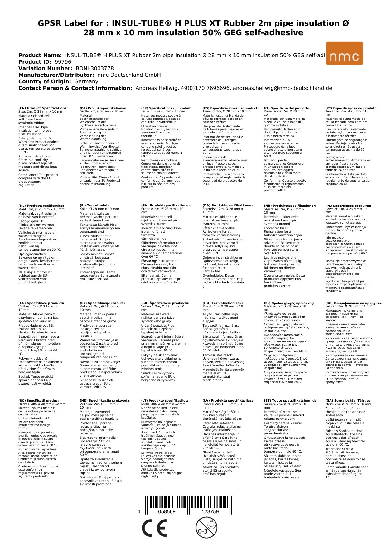 Flexible Rohrisolierung aus geschlossenzelligem Weichschaum auf Synthesekautschukbasis, selbstklebend.