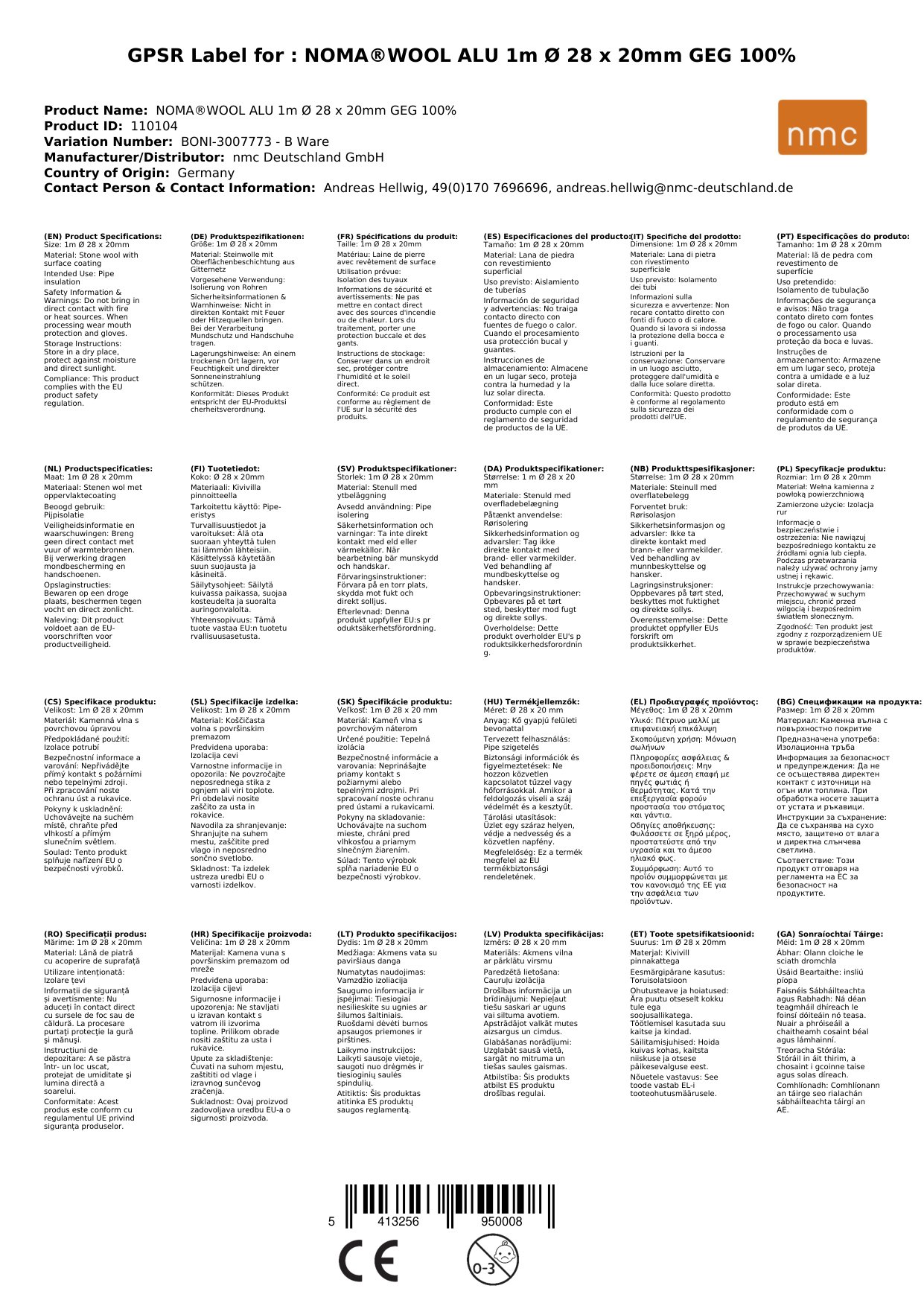 Stellen Sie eine Frage, um mehr über das Produkt zu erfahrenNOMA®WOOL ALU / CLIMATUBE® WOOL 1m Ø 28 x 20mm GEG 100%