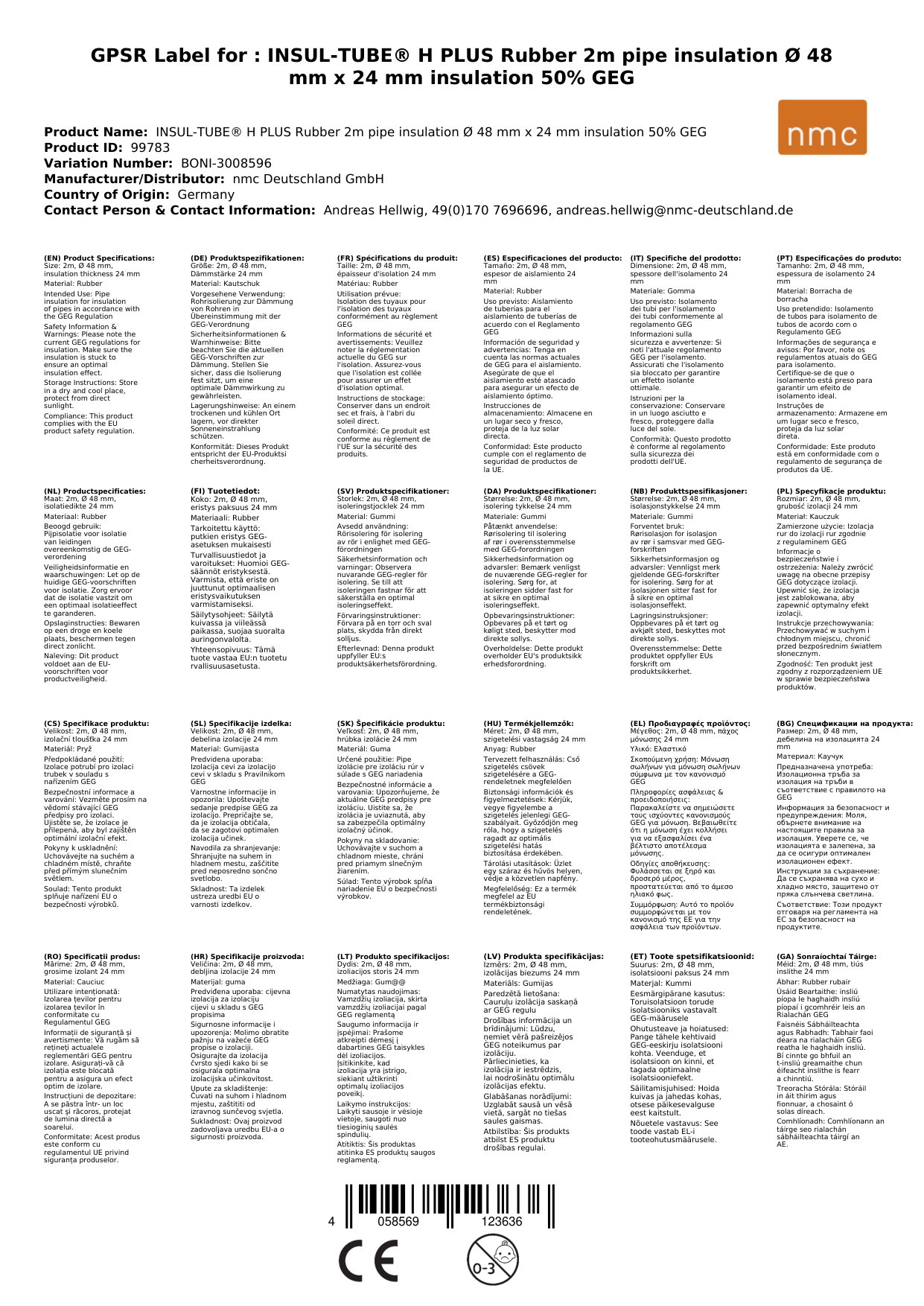 Rohrisolierung Kautschuk, 48mm, 24mm, 2m, Heizung und Sanitär, 50% GEG