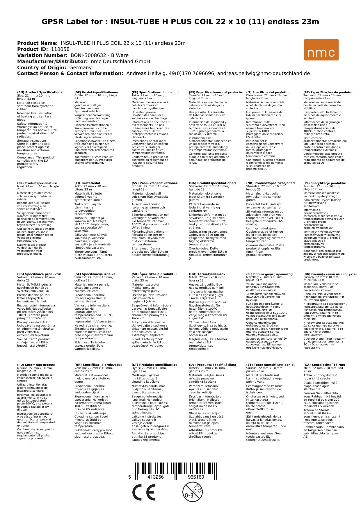 Stellen Sie eine Frage, um mehr über das Produkt zu erfahrenINSUL-TUBE H PLUS COIL 22 x 10 (11) endlos 23m