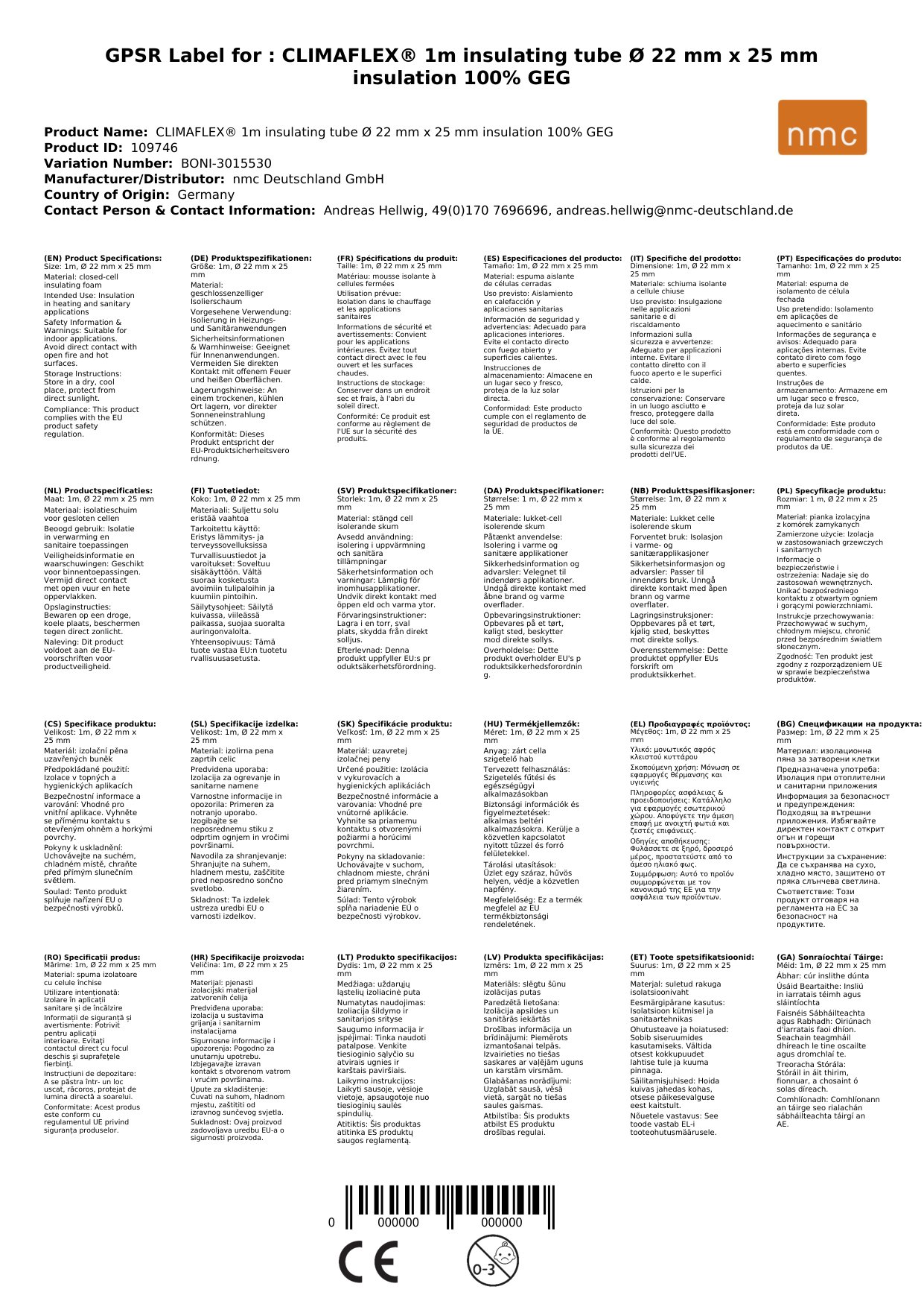 CLIMAFLEX® naturefoam 1m Isolierschlauch Ø 22 mm x 25 mm Dämmung 100% GEG