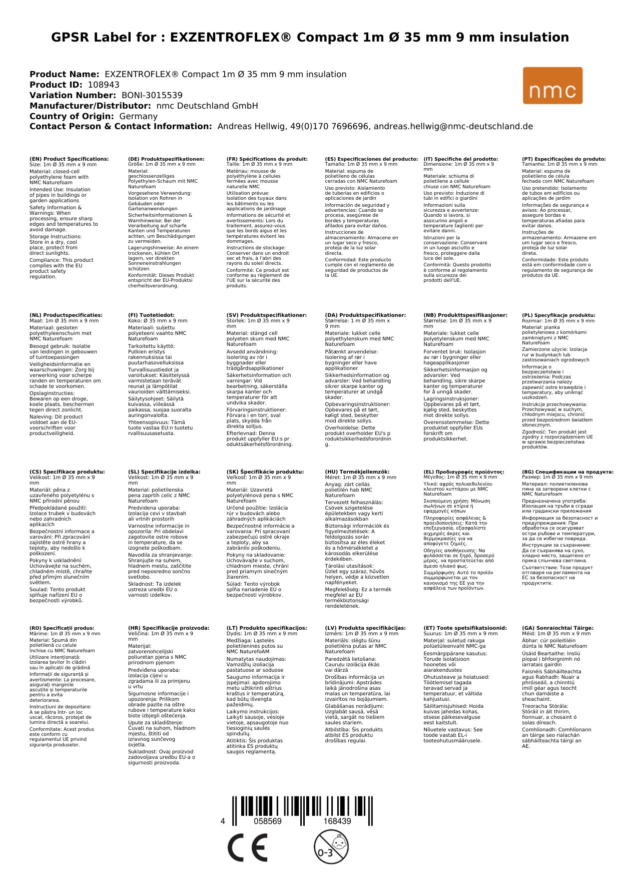 Die Rohrisolierung entspricht der Euroklasse E (EN 13501-1) / DIN 4102 B2 und ist normal entflammbar.