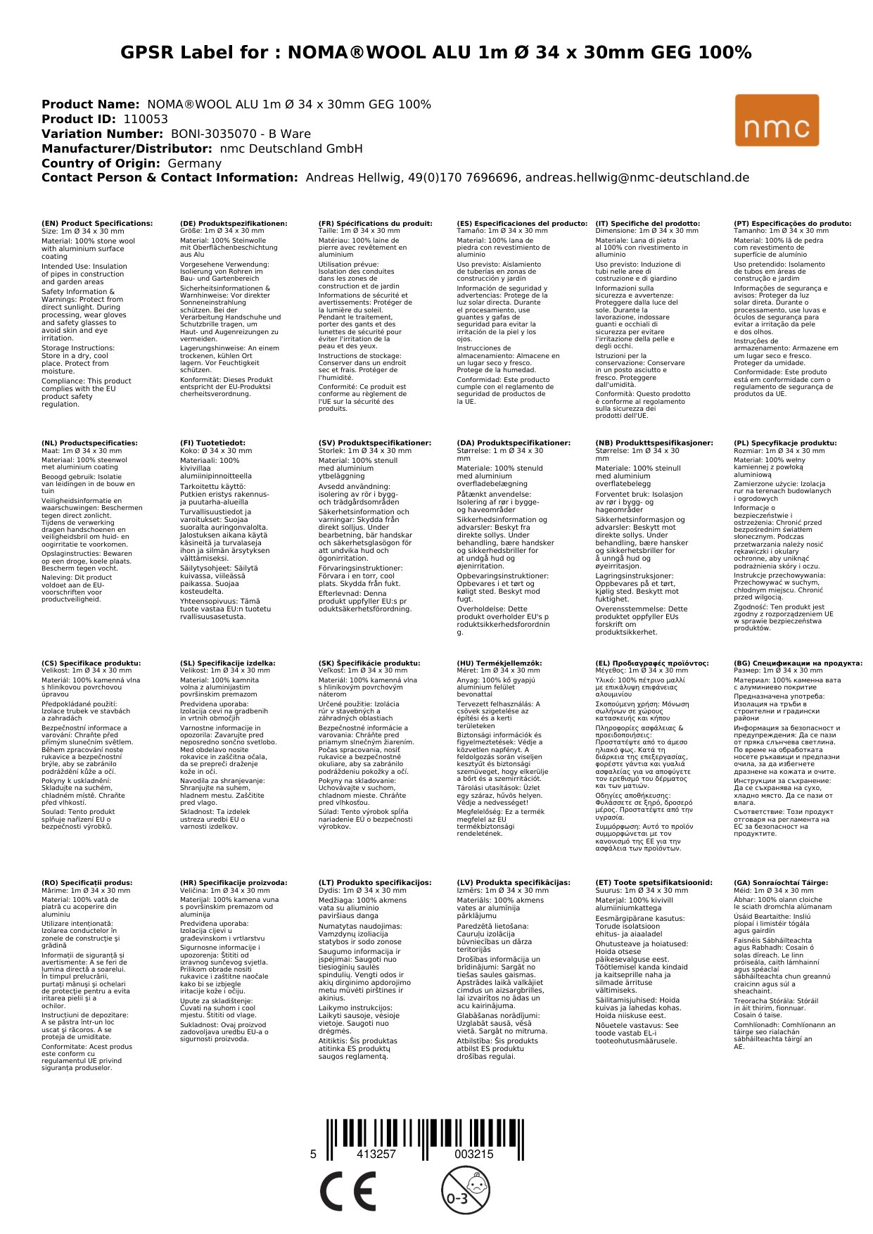 NOMA®WOOL ALU 1m Ø 34 x 30mm GEG 100%