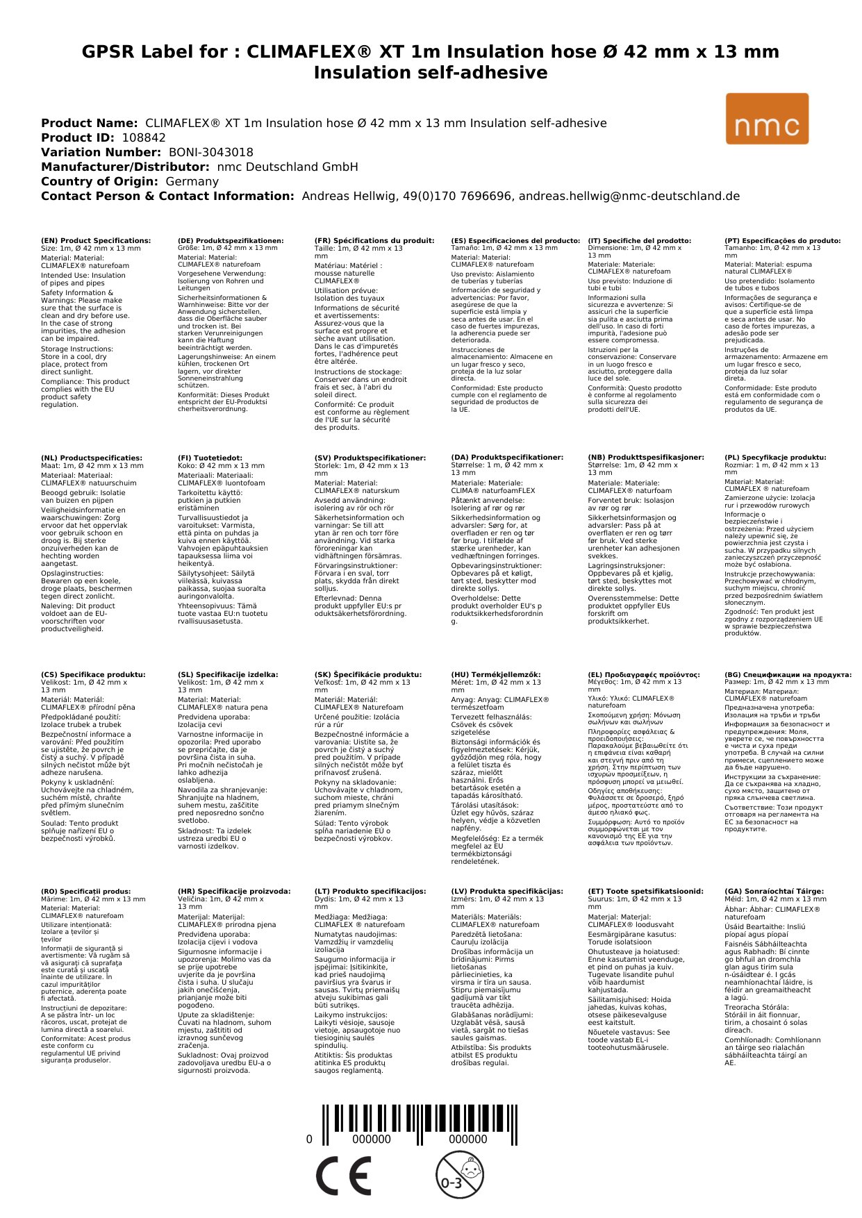 Stellen Sie eine Frage, um mehr über das Produkt zu erfahrenCLIMAFLEX® naturefoam easy 1m Isolierschlauch Ø 42 mm x 13 mm Dämmung selbstklebend