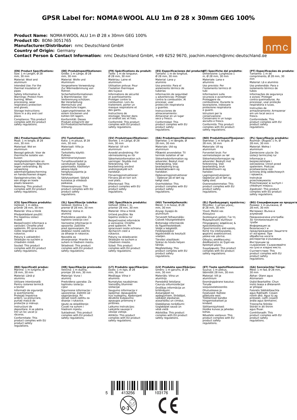 NOMA®WOOL ALU 1m Ø 28 x 30mm GEG 100%