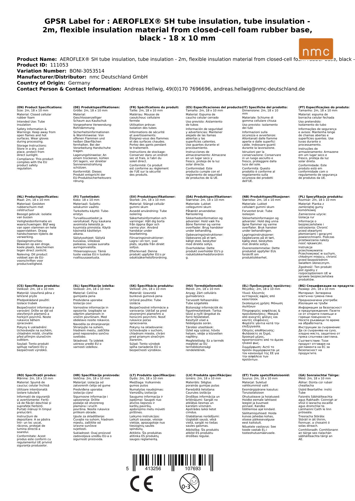AEROFLEX® SH Rohrisolierung, Rohrdämmung - 2m, Flexibler Dämmstoff aus Geschlossenzelligem Schaum Kautschukbasis, Schwarz - 18 x 10 mm