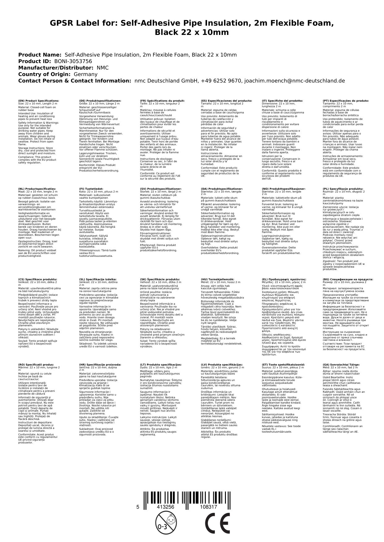 - Flexible Rohrisolierung – 22 x 10 mm, schwarz