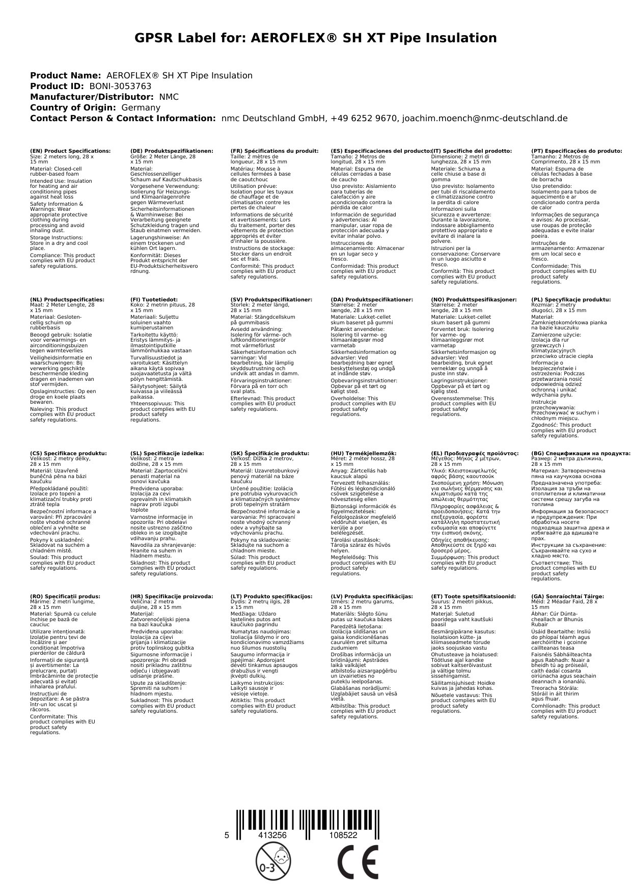 AEROFLEX® SH XT Rohrisolierung, Rohrdämmung - 2m, Selbstklebend, Flexibler Dämmstoff aus Geschlossenzelligem Schaum Kautschukbasis, Schwarz - 28 x 15 mm