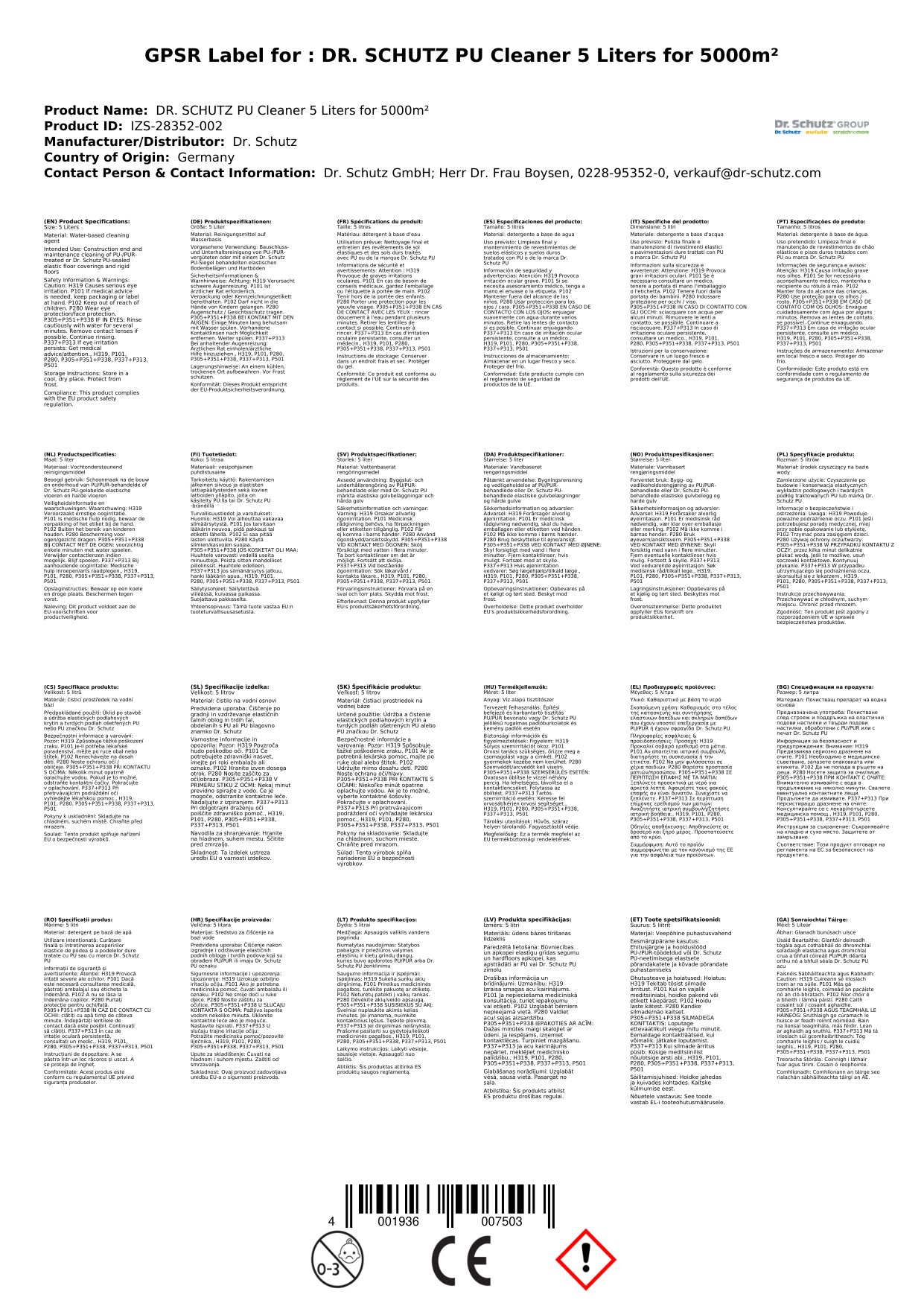 Stellen Sie eine Frage, um mehr über das Produkt zu erfahrenDr. Schutz PU Reiniger 5 Liter