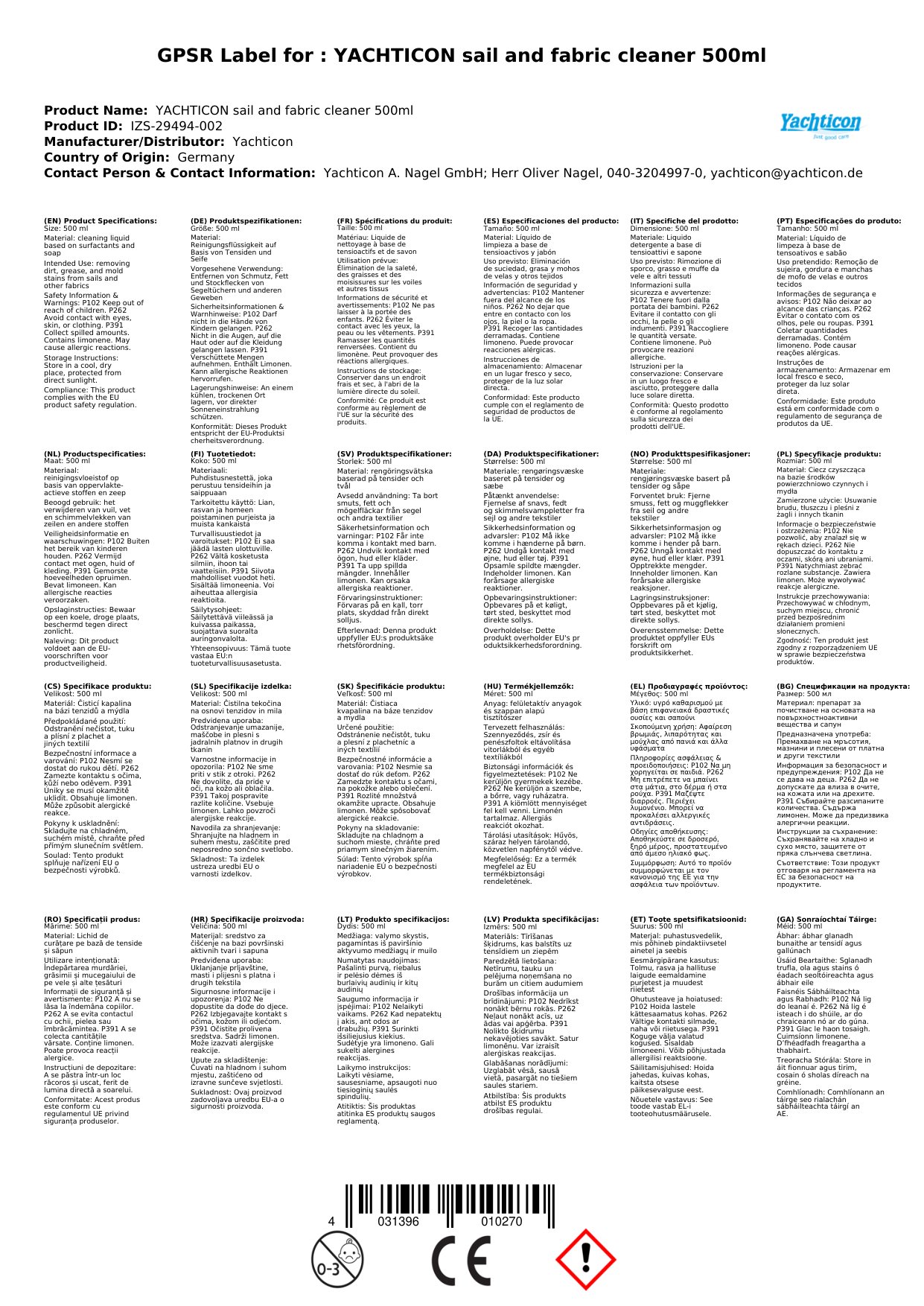 Stellen Sie eine Frage, um mehr über das Produkt zu erfahrenYachticon Segel- und Gewebe Reiniger 500 ml