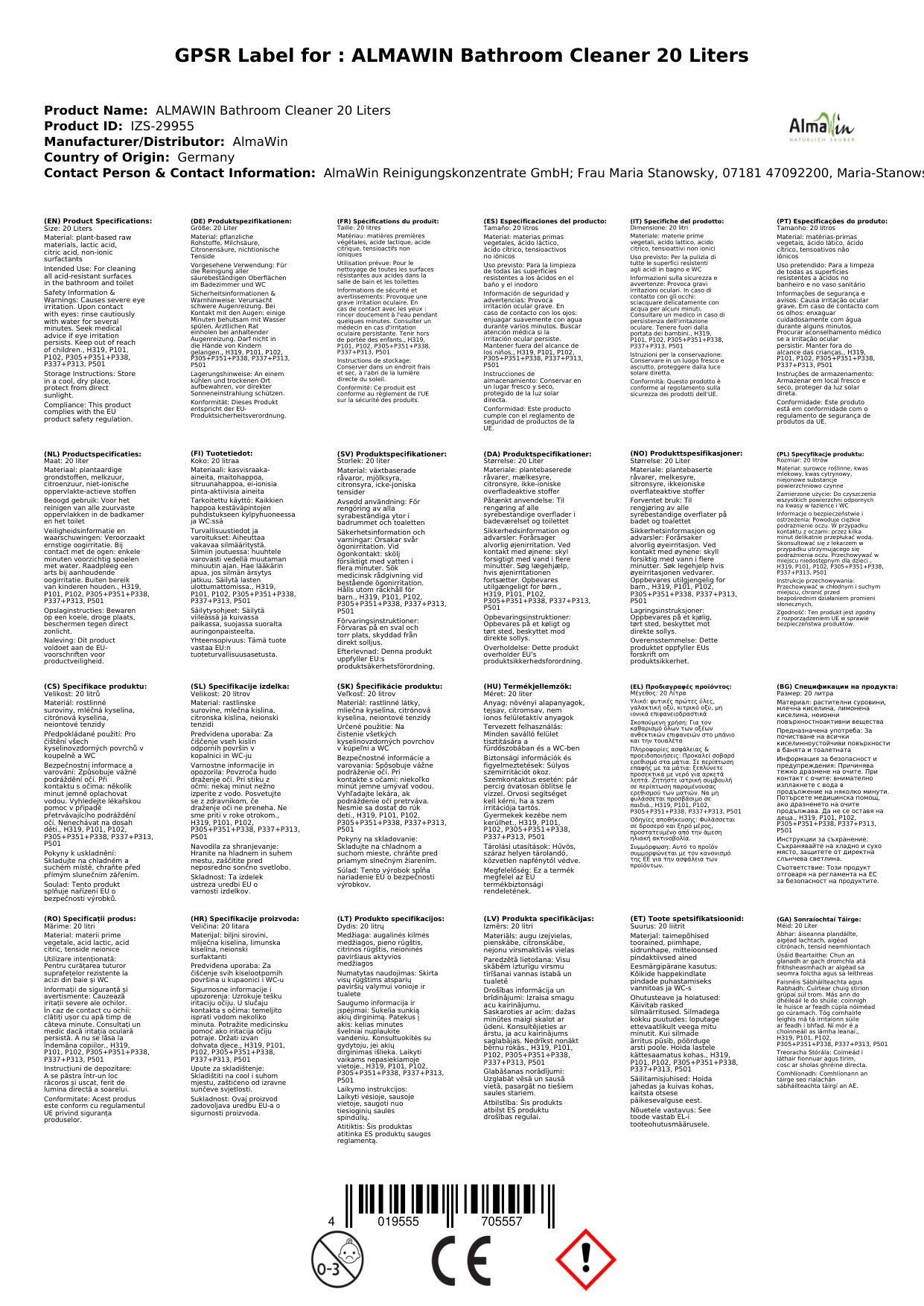Stellen Sie eine Frage, um mehr über das Produkt zu erfahrenAlmawin Badreiniger 20 Liter Kanister