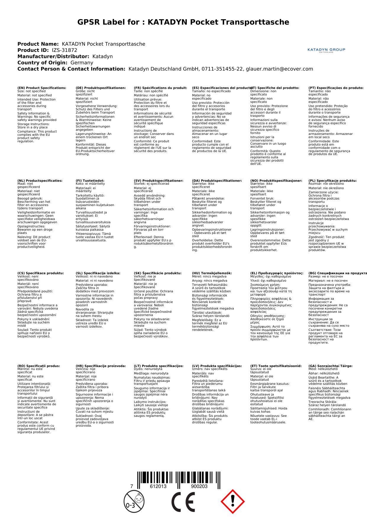 Stellen Sie eine Frage, um mehr über das Produkt zu erfahrenKatadyn Pocket Transporttasche