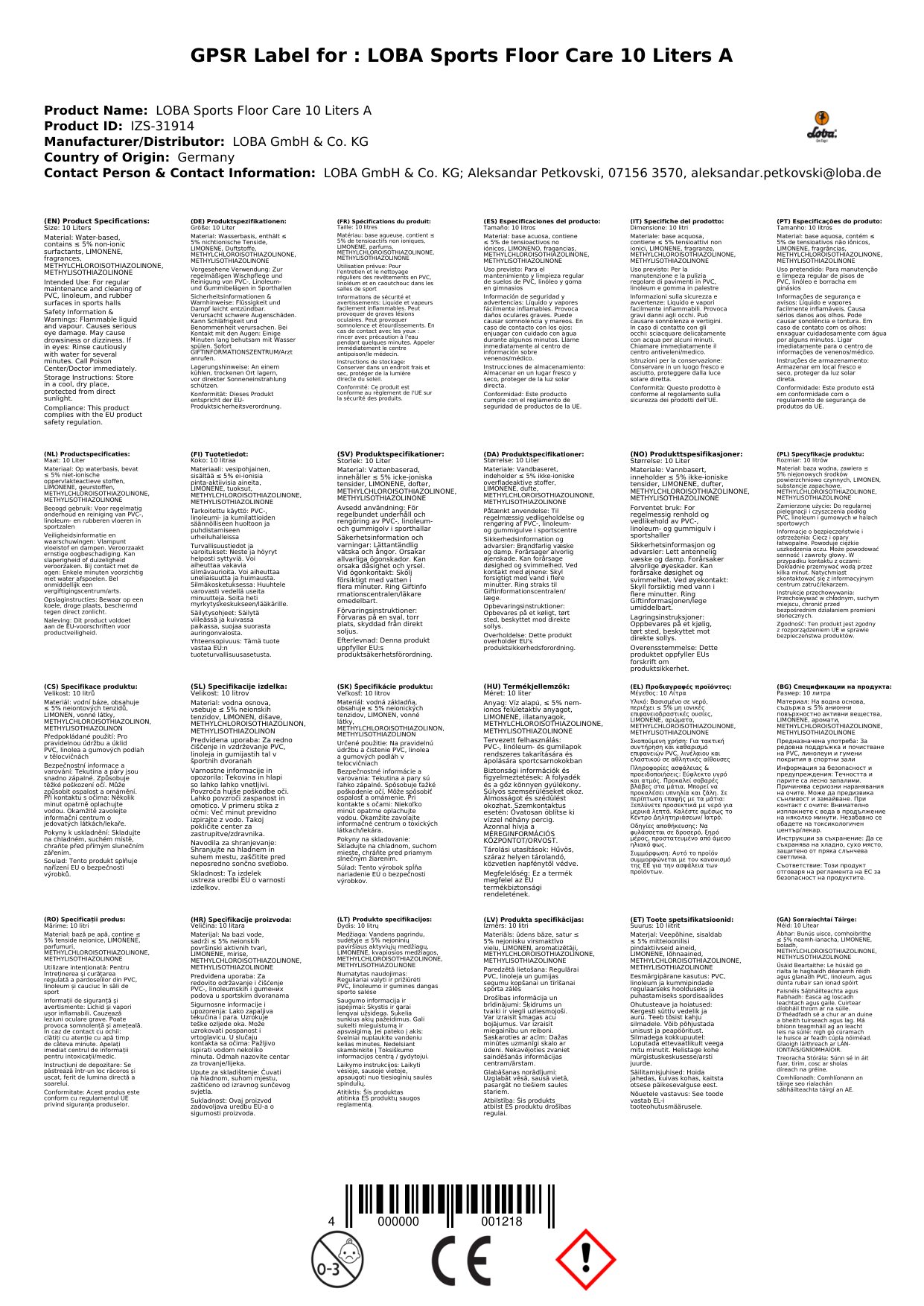 Stellen Sie eine Frage, um mehr über das Produkt zu erfahrenLoba Sportbodenpflege 10 Liter gem. DIN 18032/2